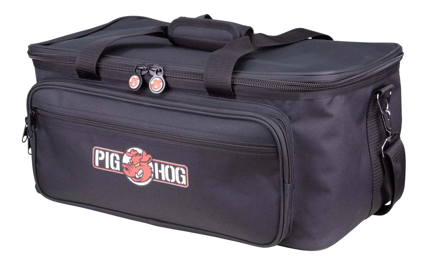 The Pig Hog Cable Organiser Bag is built to stand up to the most grueling tour conditions imaginable. The bag’s dozen slots for cables and accessories keeps all your gear easily identifiable and accessible. Additionally, the front pocket features two smaller zippered mesh pockets, two expanding Velcro flap pockets, and three pen slots, for the ultimate in organization. The sturdy webbing handles and removable shoulder strap are both padded to make transportation a breeze. Don’t settle for anything less for your cable management.