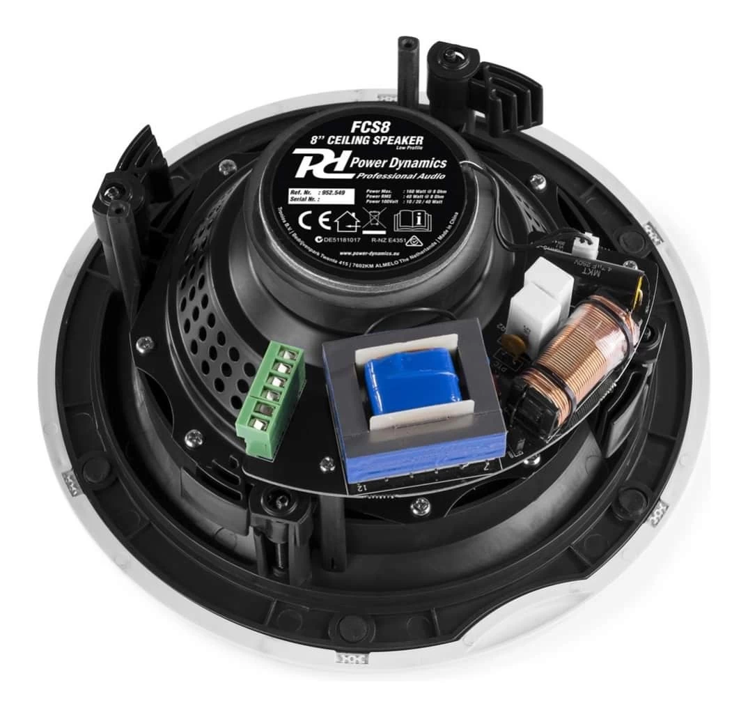 Offering excellent sound quality, and a stunning low profile, the Power Dynamics FCS8 is a series of high-quality ceiling speakers that are specially designed to offer premium finish with a superb performance in 100V line and low impedance 8 ohm systems.