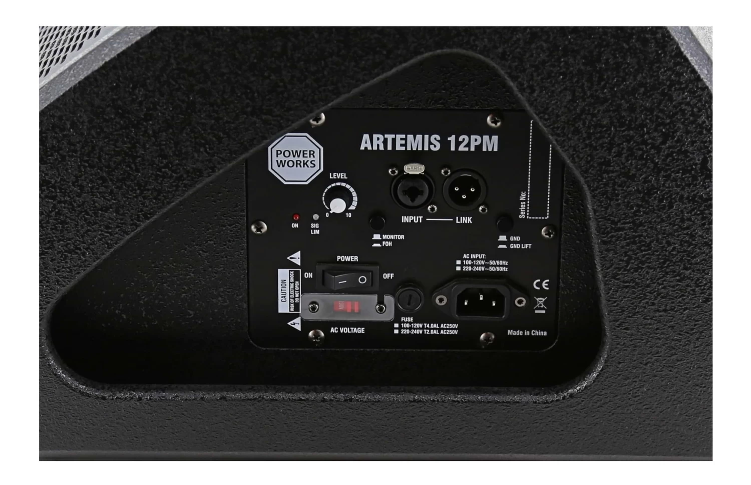 The ARTEMIS 12PD is designed as a high performance, light weight powered speaker. also can be used as a stage monitor. Featuring custom Class A/B and D amps, high powered 12″ woofer and compression driver, back-lit DSP display, 600W RMS. A 500W (continuous), Class D amplifier powers the 12-inch low-frequency driver, providing efficient, clean power for low end when you need it. A 50W (continuous), Class A/B amplifier powers the 1.35-inch high-frequency driver, delivering a natural sounding high end. The combination can deliver up to 136dB SPL (max) of clear sound between 50Hz and 19kHz.