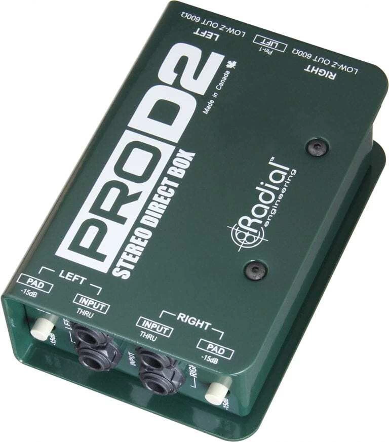 The Radial ProD2 is a compact stereo direct box developed specifically to address the needs and challenges of interfacing a stereo keyboard to a professional audio system. This passive DI features two independent channels with separate inputs and thru-puts for the artist’s stage amp and two fully isolated outputs for the PA system.