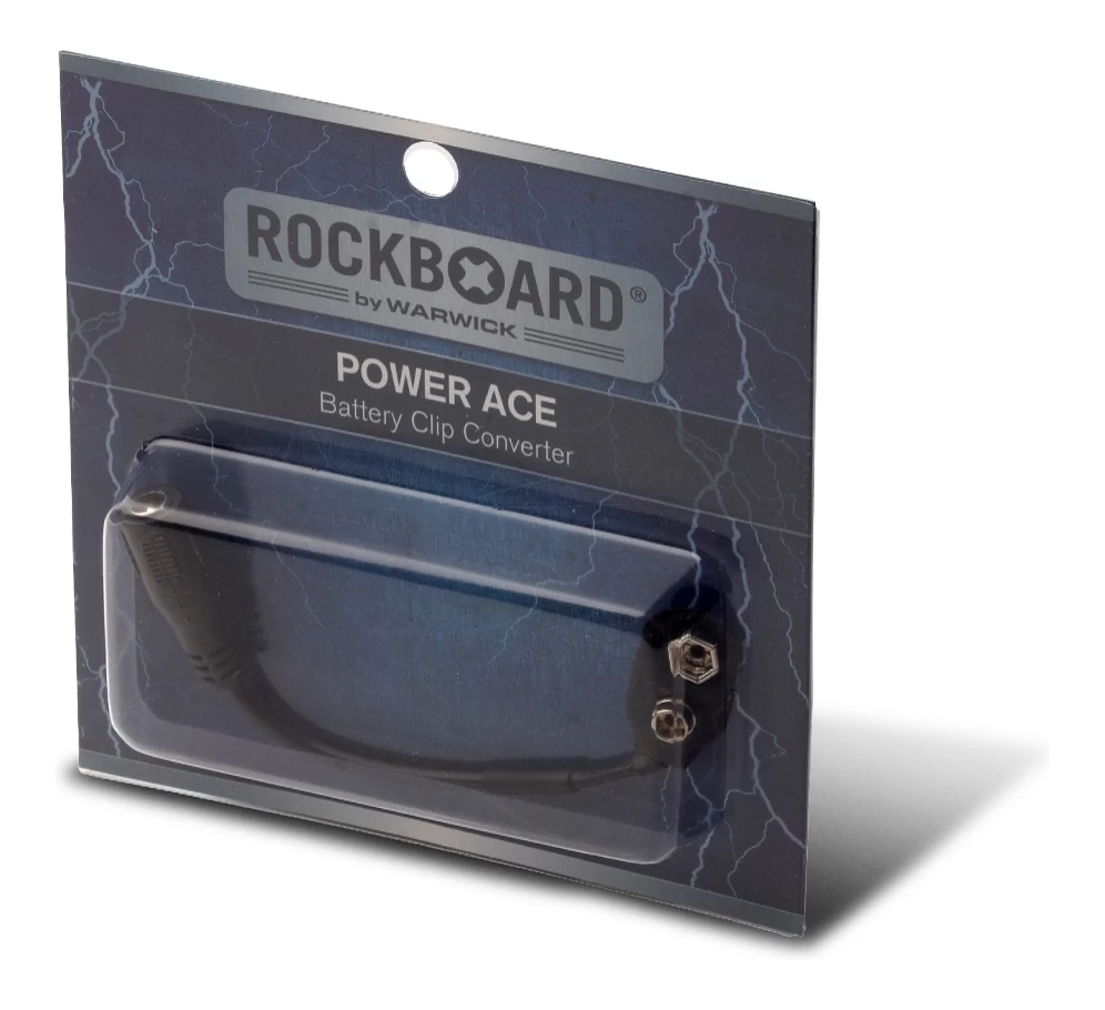 The RockBoard Power Ace Battery Clip Converter 9V Battery Clip to 2.1 x 5.5 mm Barrel Socket is a barrel converter which offers connections between 9v batteries and effects pedals. Useful for powering pedals with odd power plugs to run with batteries.