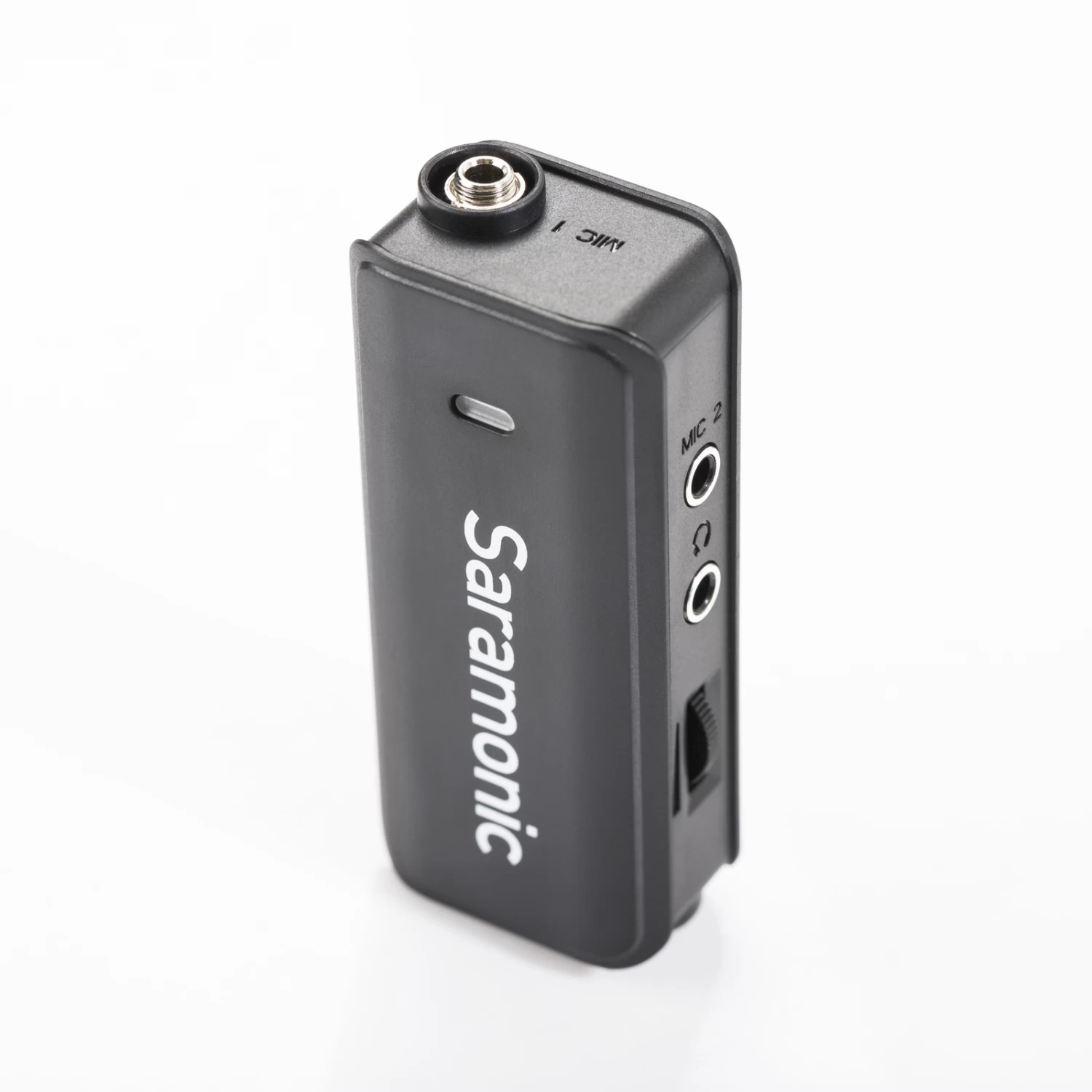 - Inputs: 1 x mic 1 1/8″ (3.5mm) jack for mono mics; 1 x mic 2 1/8″ (3.5mm) jack for mono mics