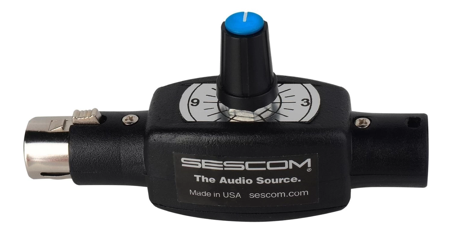 The IL-LEVEL-IT from SESCOM is a simple, but highly effective volume control that can be placed at the most convenient position anywhere in the chain between audio source and audio receiver. With balanced male and female XLR connectors, and a solid, sizable volume knob, the IL-LEVEL-IT can provide easy access and control of volume leaving a device to whomever requires it, whether it be the musician on stage, the monitor engineer, or even for controlling audio level at a conference table.
