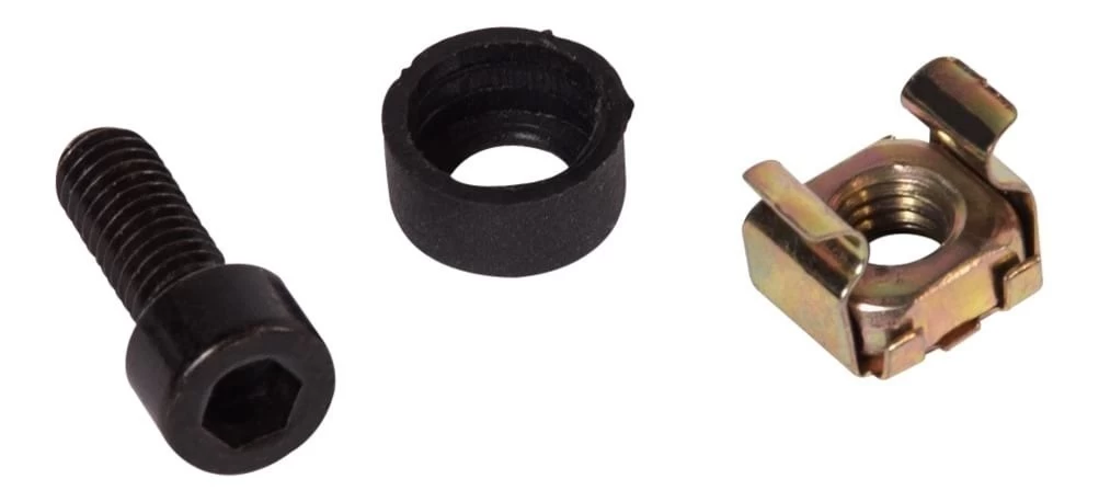 Set of 10x 3-piece bolt and cage nut set is designed for mounting rack gear to a standard 19″ rack stand or case. The M6 sized screw is a robust build and has a HEX head. The included cage nut can be used with un-threaded rack rails featuring the standard 9mm by 9mm cage nut holes.