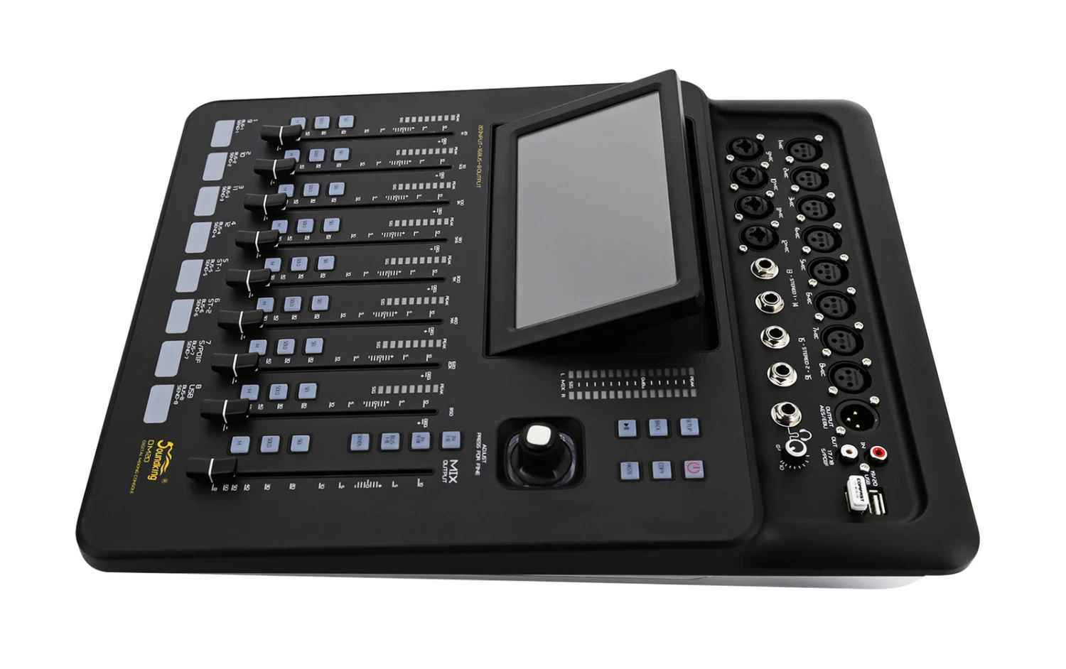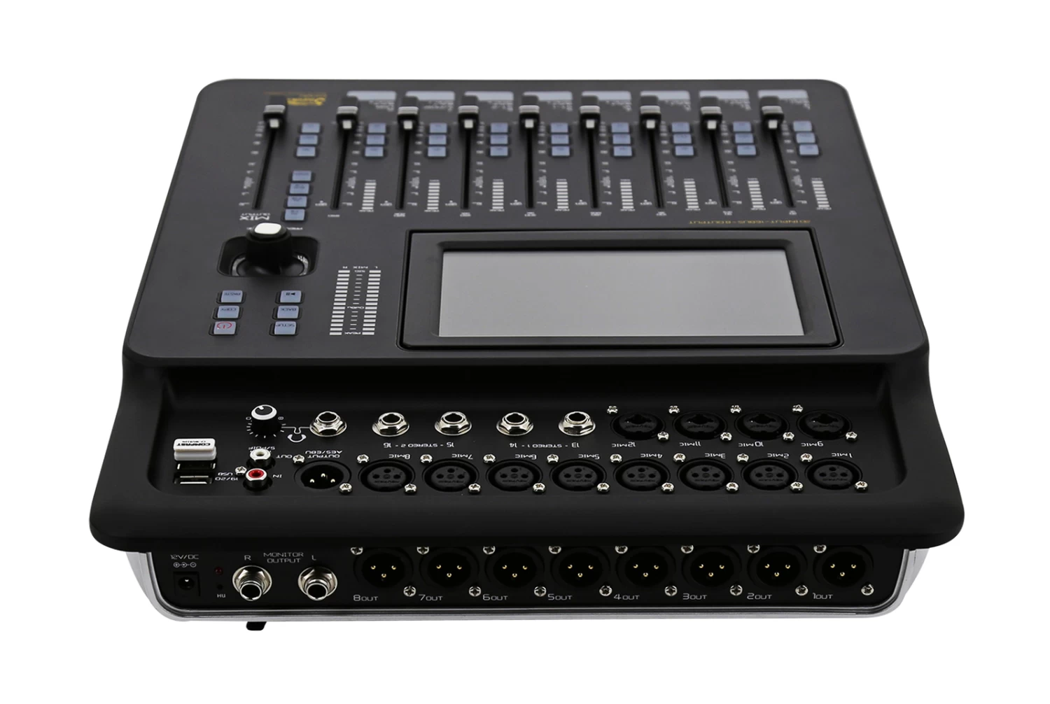Featuring a 1200x600mm touchscreen for controlling all aspects of the mixing desk. Like any modern touchscreen, it is responsive to touch and easy to use. The large master control knob is perfect for fine-tuning dB settings and can be used in conjunction with the touchscreen with ease for quick and accurate mixing. The high quality ALPS motorised faders respond instantly to selection changes allowing the user to switch between channels 1-8, 9-16, 8-bus or 8-out at any time, while always landing at their precise location.