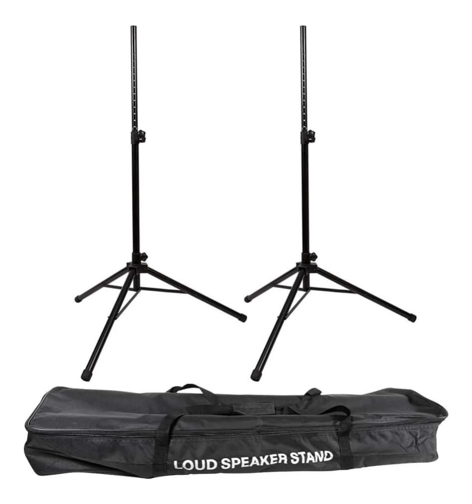 A great value pack consisting of two heavy duty tripod speaker stands and carry bag. Constructed from steel, these are strong and highly durable speaker stands designed for use as portable PA speaker stands. Height range of 117cm to 220cm.