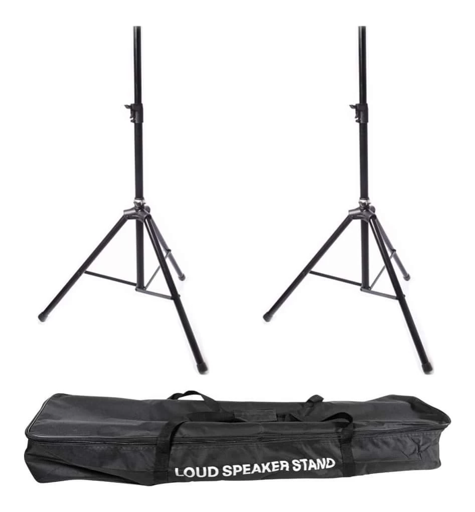 This great pack consists of two heavy duty tripod speaker stands, featuring auto locking and air cushioning, and a carry bag. Constructed from 35mm steel tubing, these are highly durable speaker stands designed for most PA speakers, holding up to 32kg.