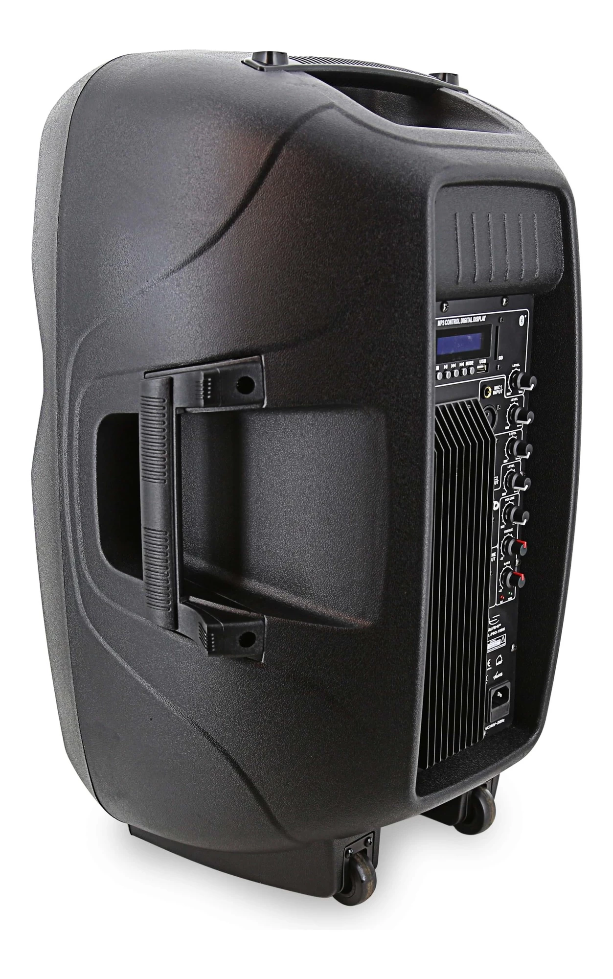 - Side and Top Carry Handles (Top handle helps to “pull” the speaker when using the bottom wheels)