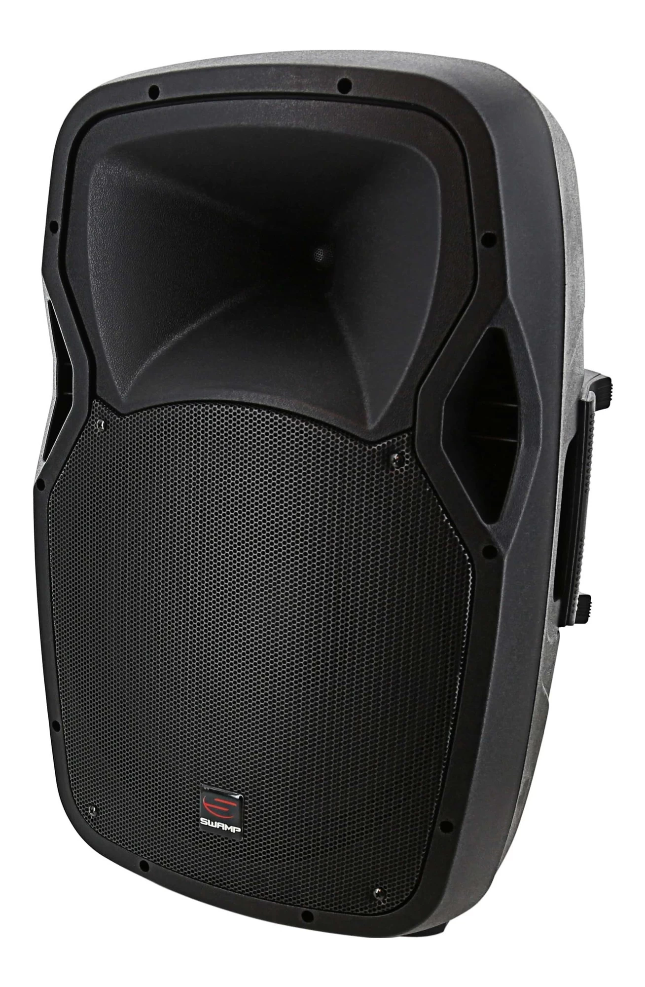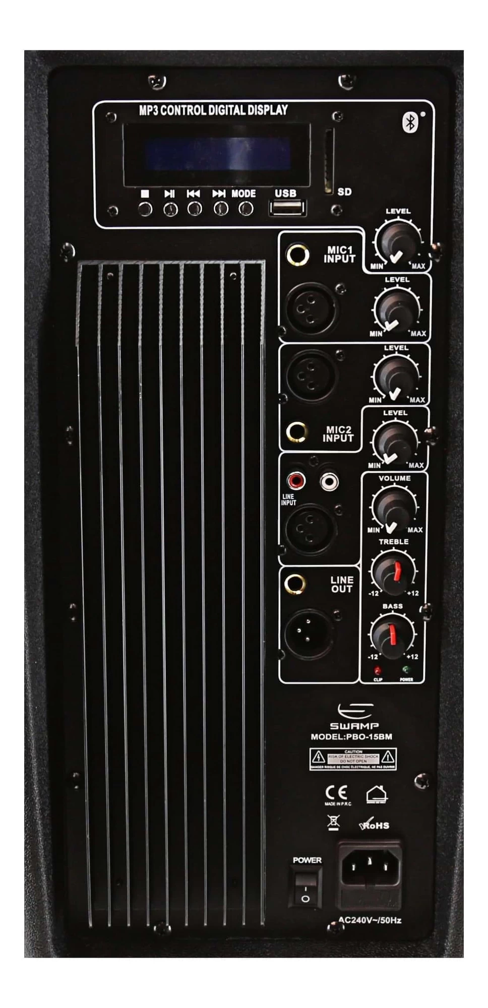 The PBO-15BM is SWAMP’s all-round workhorse PA speaker, with a bi-amped design and Bluetooth connectivity. Featuring 2 channel inputs for microphones (XLR and jack for both) and line level audio signals, 2 band EQ control, 250W of power in a monitor / foldback option speaker box. This speaker is ideal for anyone that requries a more detailed and punchy bottom end. Also featured in the form factor of this speaker is a set of wheels which makes it easy to transport.