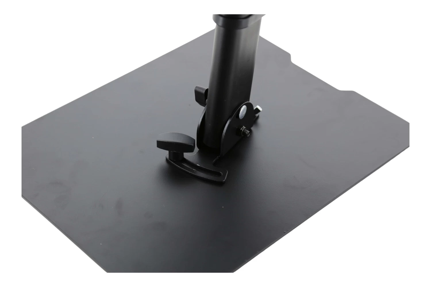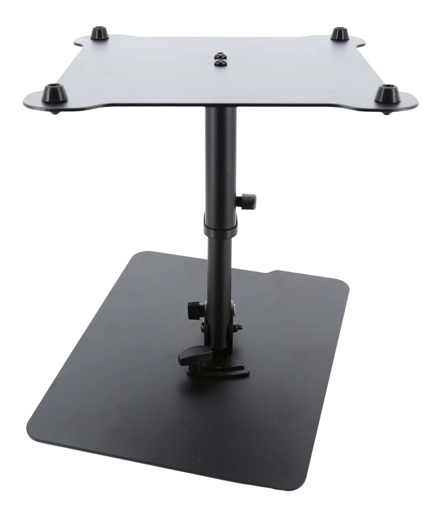 Height and angle adjustable, and constructed using heavy duty steel, the SWAMP 8″ Desktop Speaker Stands provides excellent stability and effectiveness in positioning your monitors in your studio for creative listening. Rubber feet and no-slip top shelf.