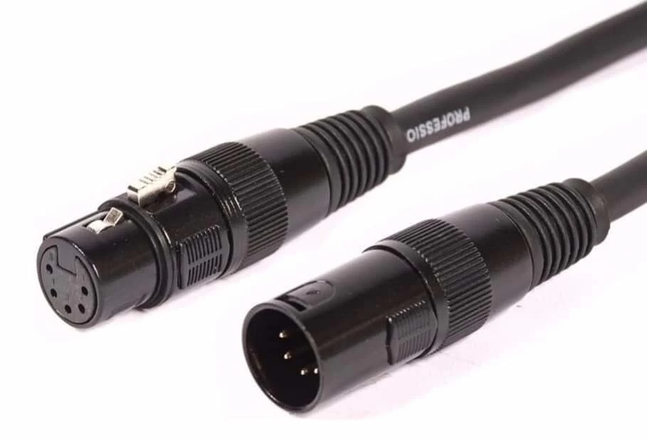 Standard DMX512 protocol specifies each cable should have “two twisted pair data paths”, meaning 4 conductors + 1 ground, with 5-pin connectors. Though often only a single twisted pair (2 conductors) are utilised by DMX512 equipment, so often manufacturers have opted for 3pin XLR sockets to enable the use or regular mic cables. This has downfalls, as many mic cables do no have the shielding capabilities of rejecting interference, only “braided” shield microphones are really suitable for DMX512 signals.