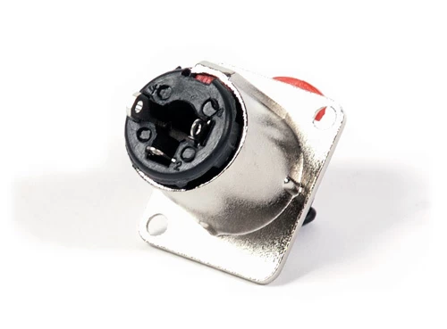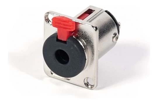 Generic TRS socket. This is a single 1/4″ female TRS patch bay socket used to transfer a balanced or stereo audio signal.