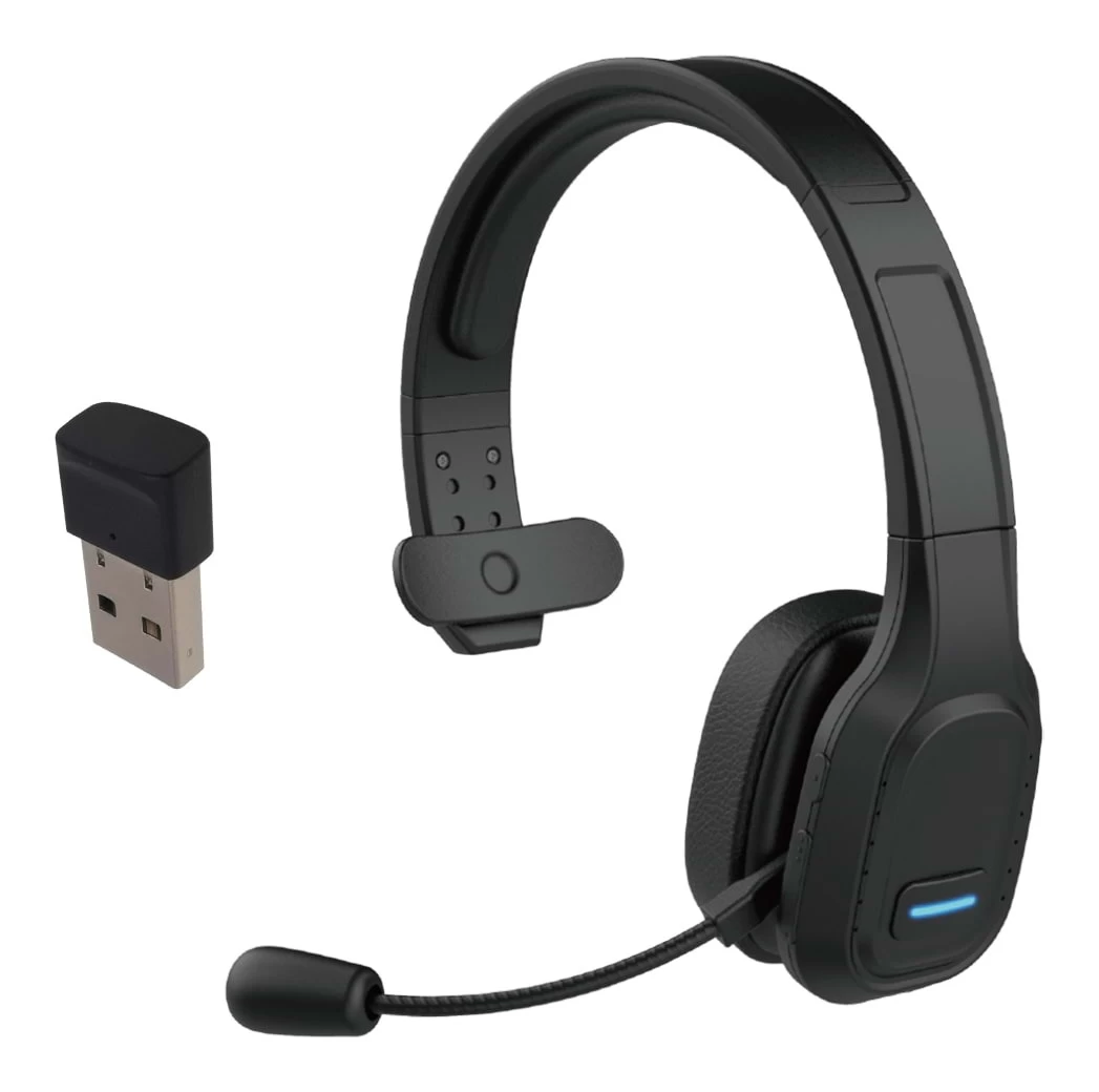 This lightweight, adjustable, and comfortable Bluetooth headset makes for easy use when you require strong and stable signals for communication. Featuring 280° rotating microphone, 400 hours of standby time, 30 hours of use, includes USB dongle as well.