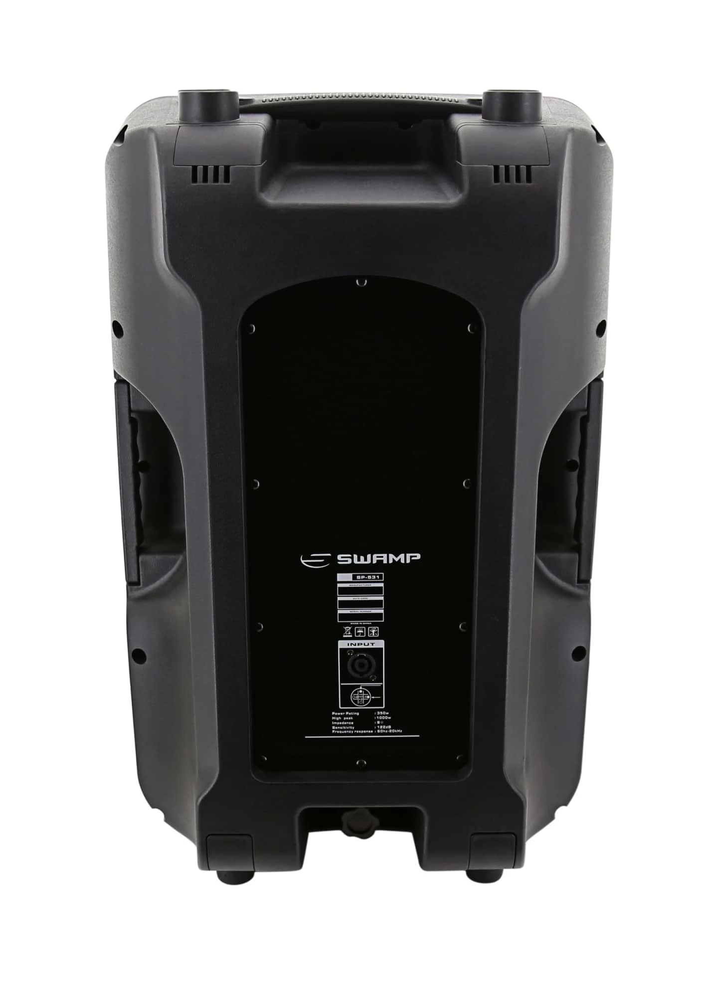 The MS-5384 provides an all-in one PA solution including amplifier, speakers, 8CH mixer and wireless microphone. A modern Class D amplifier drives each of the 15″ speakers at 300W, providing plenty of power to suit most PA requirements. Built-in 8 channel mixer 2 wireless handheld mics, bluetooth connectivity and 16x 32bit built in effects/FX. Completely versatile system suitable for venues, schools, business and government centers, and performing musicians.