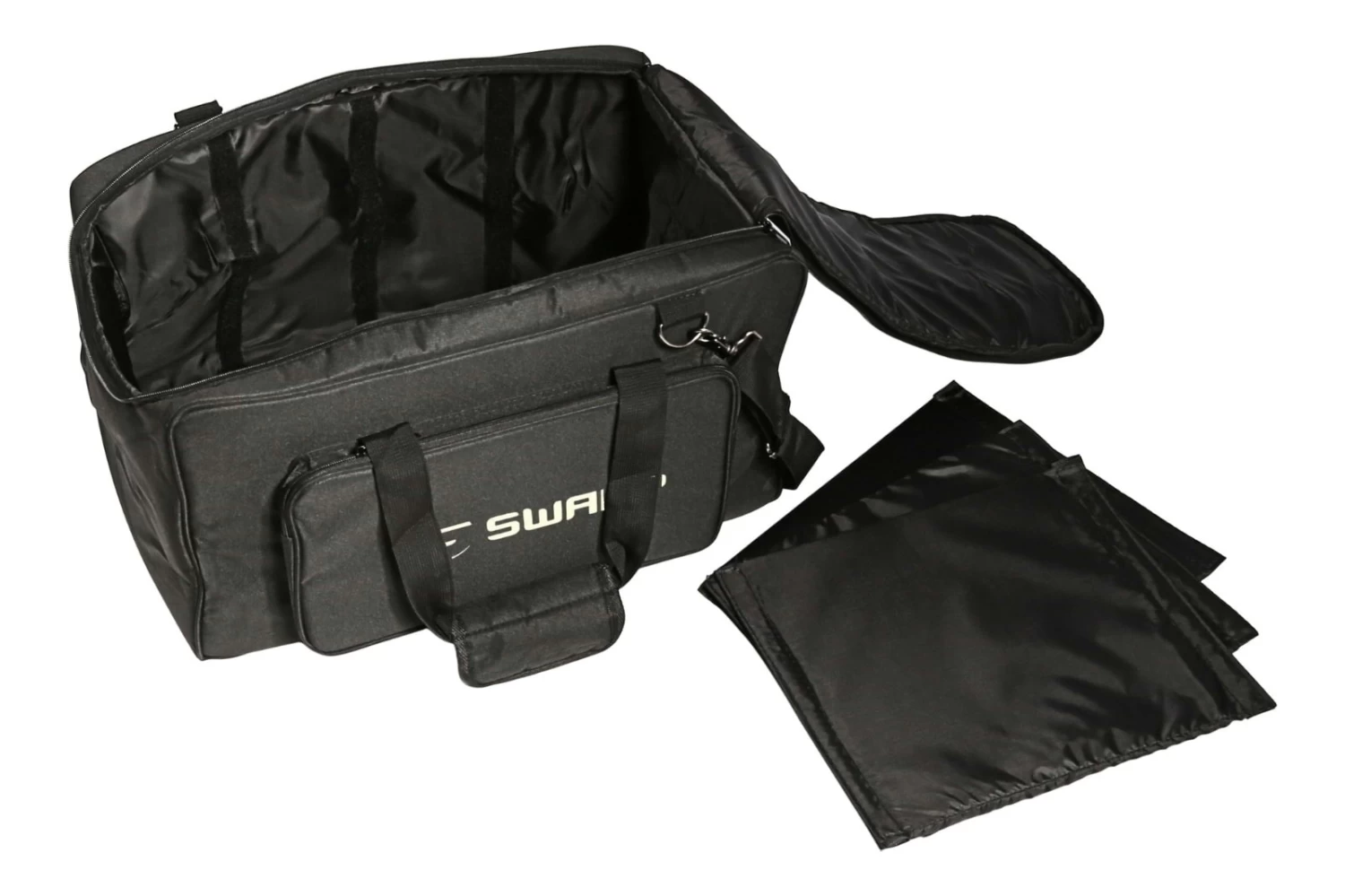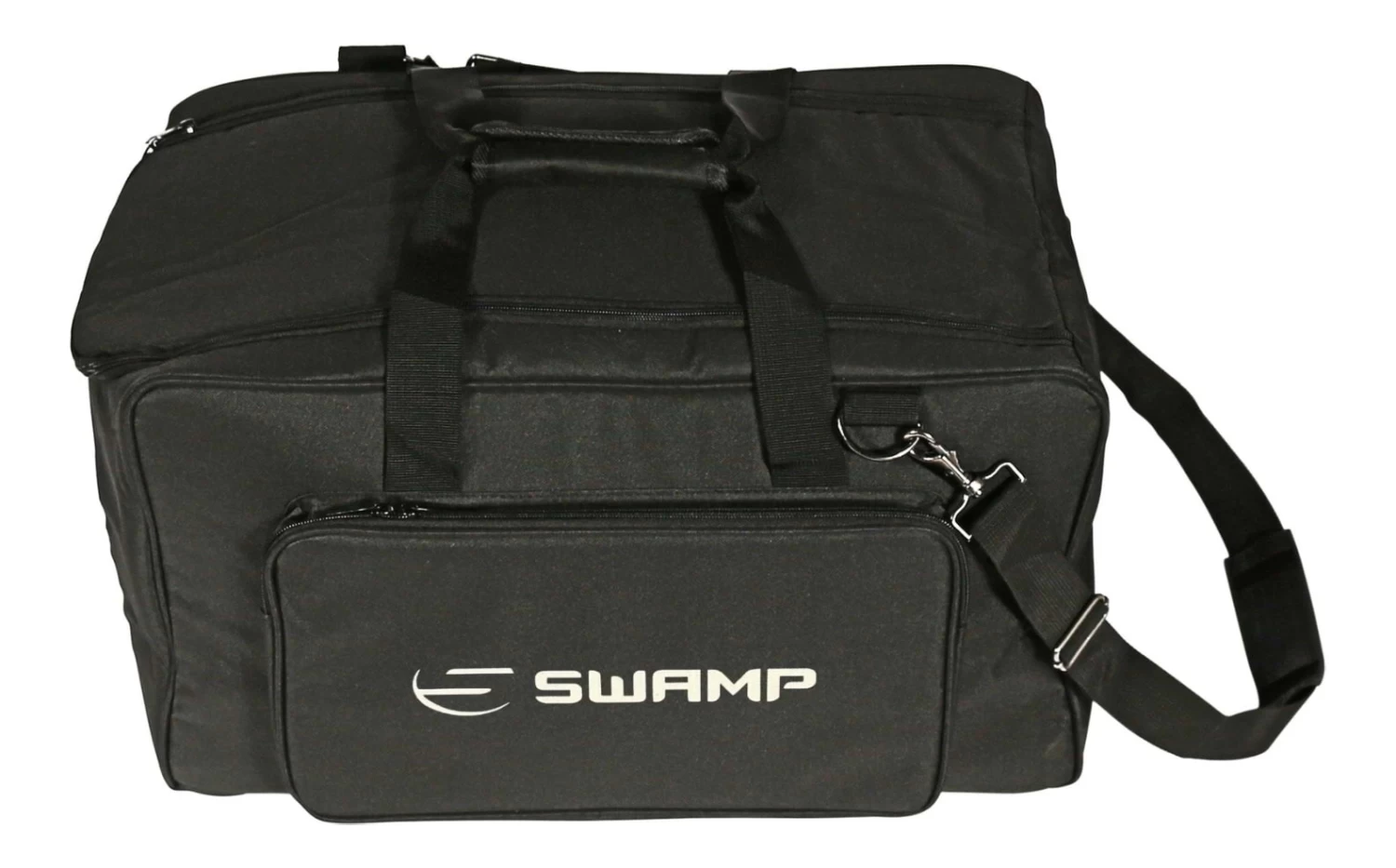 SWAMP’s new padded bag is ideal to store and transport audio cables and equipment, LED lighting fixtures, microphones, and accessories. Made from anti-tear Cordura fabric, the bag features an internal section which measures at 28cm (H) x 29cm (W) x 50cm (L). The two outer pockets provide further options for storage. They measure at 36cm x 20cm x 3cm. The handle is padded and it also comes with a shoulder strap. On the bottom are 4 sturdy rubber feet for added protection on the move.