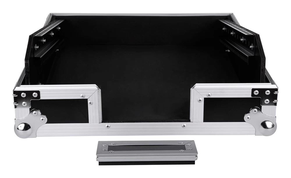 The WMC-19-12 features 12U 19″ double rack rails set in a rugged 8mm plywood flight case and a removable cable door for quick patching. All of our W-Series cases are constructed with laminated plywood panels, heavy duty butterfly latches, aluminium extrusions and foam lining, making them a reliable choice for protecting your 19″ rack-mountable mixer on the road.