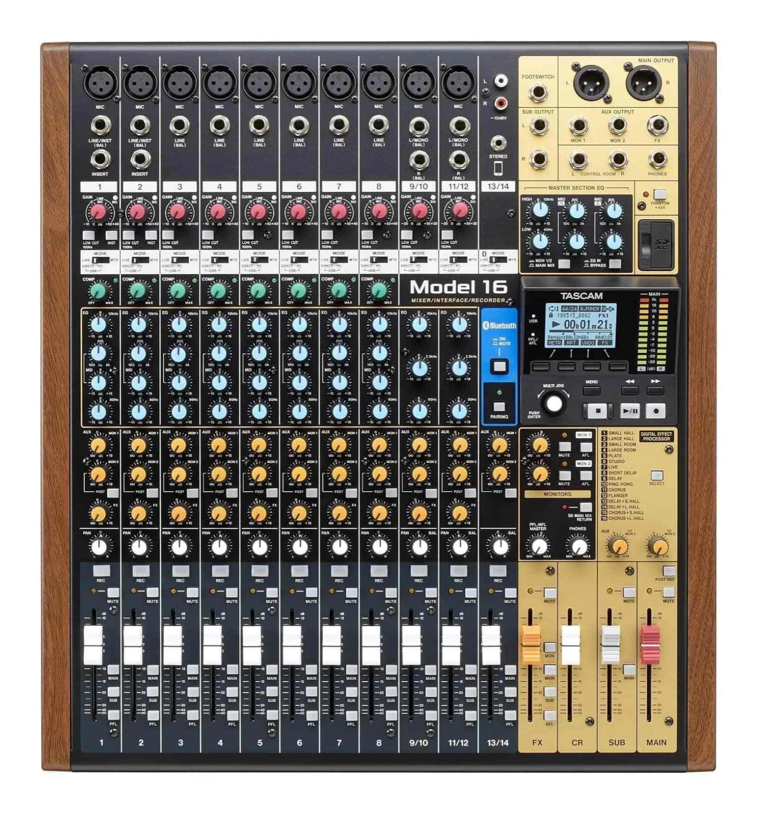 A complete digital solution. The Tascam Model 16 provides many outstanding features as a stand-alone integrated production suite – USB audio interface, a mixer, a standalone multitrack recorder, and a DAW controller. For songwriters, performers, podcast.