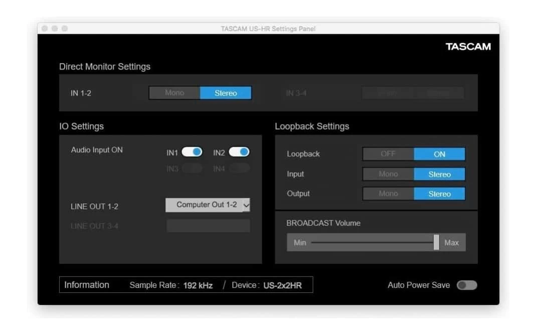 The Tascam US-2x2HR new Ultra-High Definition Discrete Architecture mic preamp design delivers audio with extremely low self-noise to capture every detail of your musical performances. Because of the wide dynamic range, this interface can also be used with dynamic microphones in addition to condenser mics. This makes it ideal for a variety of applications from recording vocals, pianos and acoustic guitars. With two combo jack mic/line inputs with guitar input support audio interface with implemented MIDI IN/OUT ports. Equipped loopback function and OBS support makes this interface applicable for podcasts and live streaming. The new US-2x2HR offers simple and intuitive operation plus sophisticated looks, a rich assortment of software bundles, and improved audio performance with 192 kHz support, thanks to the newly improved audio circuit.