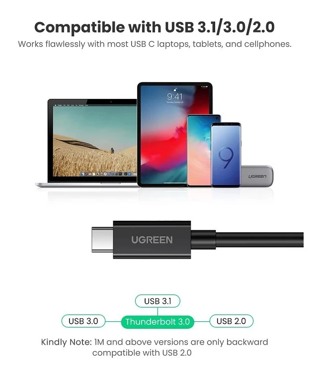 The Thunderbolt 3 cable is not only a Thunderbolt 3 cable, but also supports all the “must-have” features of USB 3.1. This Thunderbolt 3 cable can also compatible with USB 3.1 Gen 2, USB 3.0, USB 2.0, this means it can also be used as a universal USB-C cable for USB-C enabled devices, computers, phones, tablets, hard drives, docking stations, accessories, and more.