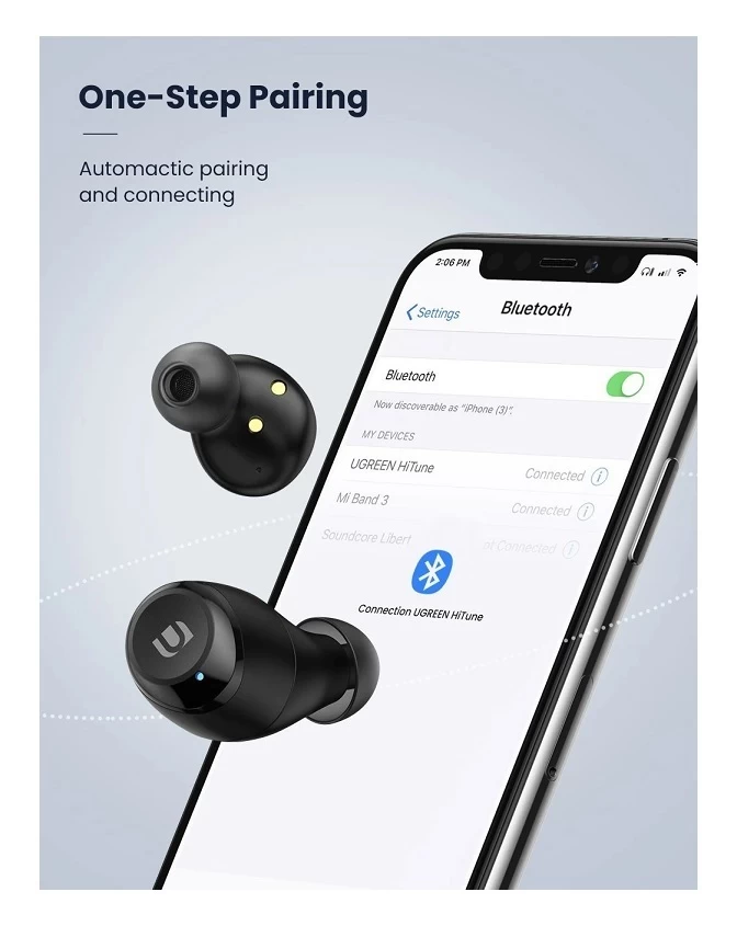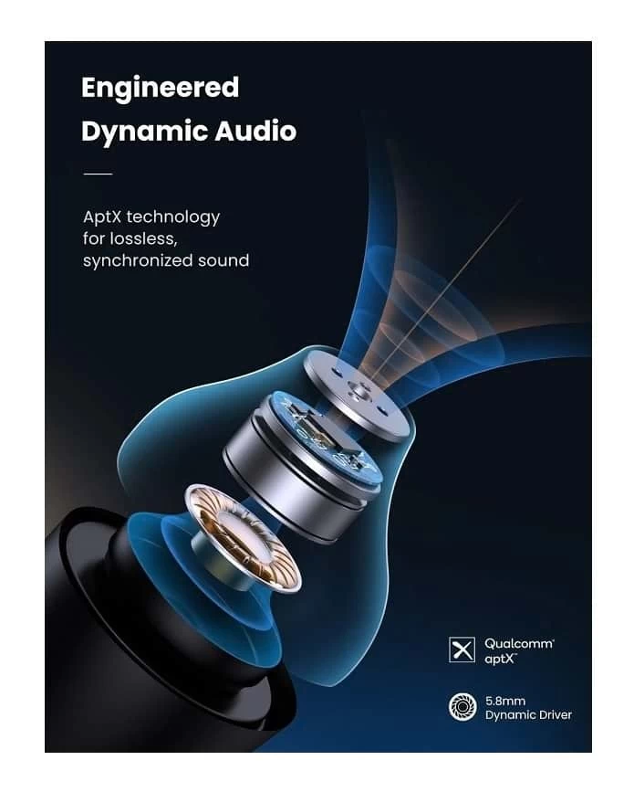 The UGREEN 80606 earbuds supports aptX, AAC and SBC technology, superior to most of the wireless earphones in the market. With the Qualcomm QCC3020 chip it ensures stable connection and high fidelity sound. WIth the 5.8mm dynamic drivers deliver crisp, rich, authentic immersive music. This wireless earbuds not only solve the hassle of wired earphones but also provide you a well-balanced and surprisingly outstanding music experience.