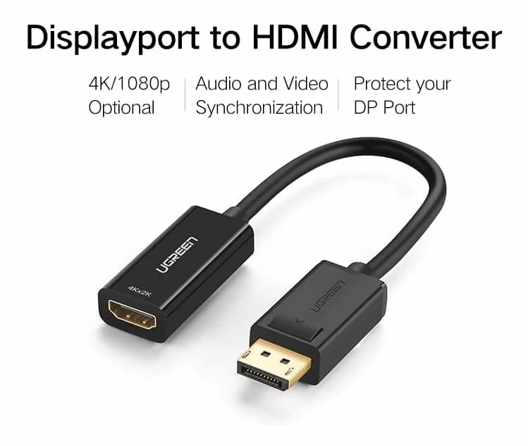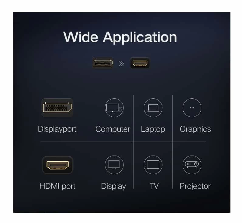 This converter can seamlessly connect a DisplayPort-equipped laptop, desktop, or graphics card to an HDTV, monitor, or projector with HDMI input. It can transmit both audio & video from PC to a HDTV display.