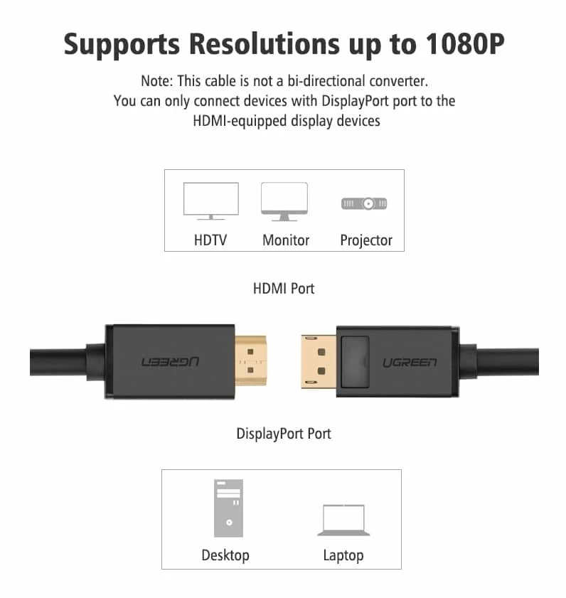 UGREEN​ Audio and Video Cable for Connecting Laptop to HDTV Projectors