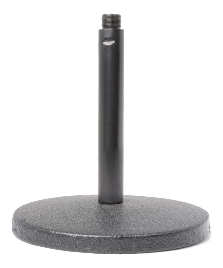 This Vonyx desk stand is an ideal sturdy and solid solution for microphones and short height miking. Features a round cast iron base, and goes to 15cm in height. Excellent for using in podcasts, interviews and miking kick drums and amps. Capable of supporting a wide range of microphones with a 5/8″ thread size.