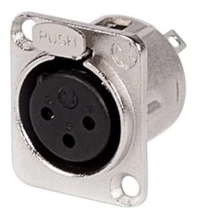 Genuine YS145 Yongsheng XLR female audio socket connector. The YS145 is a 3-pole panel mount connector featuring solder cups, Nickel housing and silver contacts.