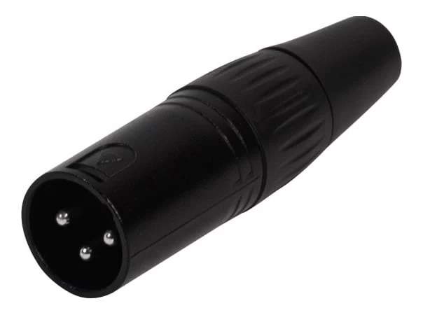 Genuine YS137N Yongsheng XLR(m) Black audio connector. This is a single male XLR connector used to transfer a balanced audio signal via 3 pins through an audio cable. Often used to terminate mic cables.