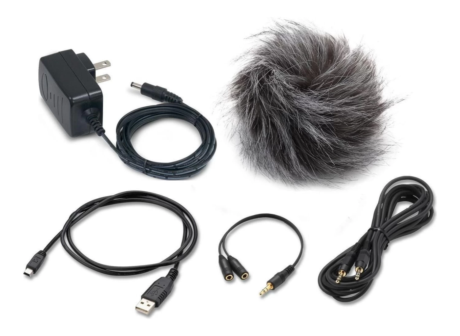 The custom hairy windscreen is designed to reduce wind noise while remaining acoustically transparent in any outdoor shooting scenarios. The AC Adaptor will save you many dollars on batteries, when you have access to an outlet. The USB cable is handy for file transfers to your desktop or laptop computers. The 3.5mm attenuator cable is designed for connecting the H4n line output to your camer’s mic input. The included splitter cable can also allow for simultaneouos headphone monitoring.