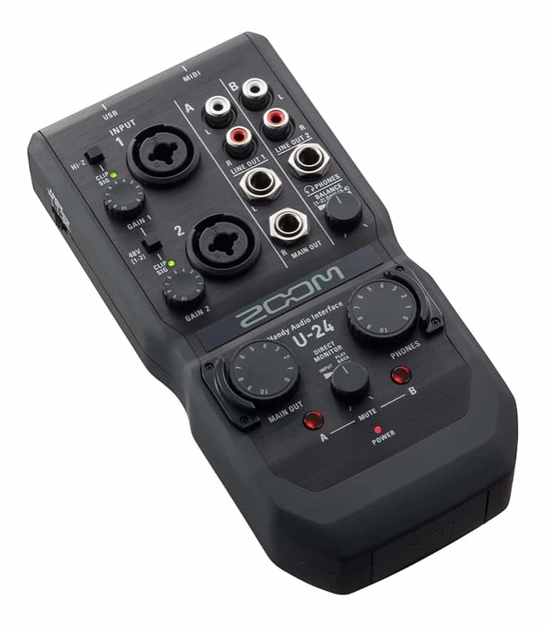 The U-24 can be bus-powered via USB and its compact form factor is perfect for use with a laptop or iPhone/iPad (Requires 2 AA batteries or optional AC adapter for power, plus an Apple iPad Camera Connection Kit or Lightning-to-USB Camera Adapter for connection to iPhone/iPad). The innovative design provides quick access to connectors, knobs, and controls for effortless setup and operation.